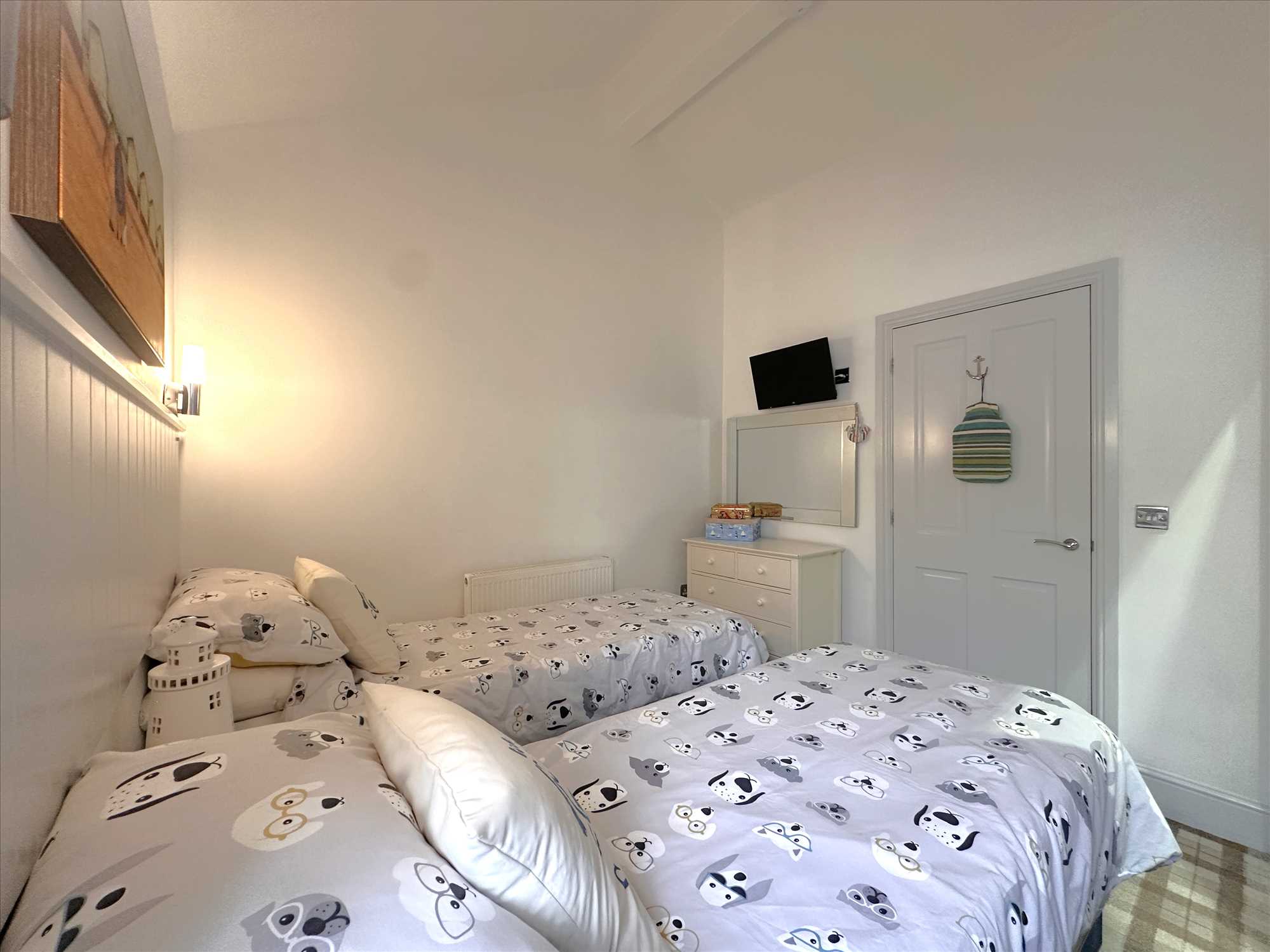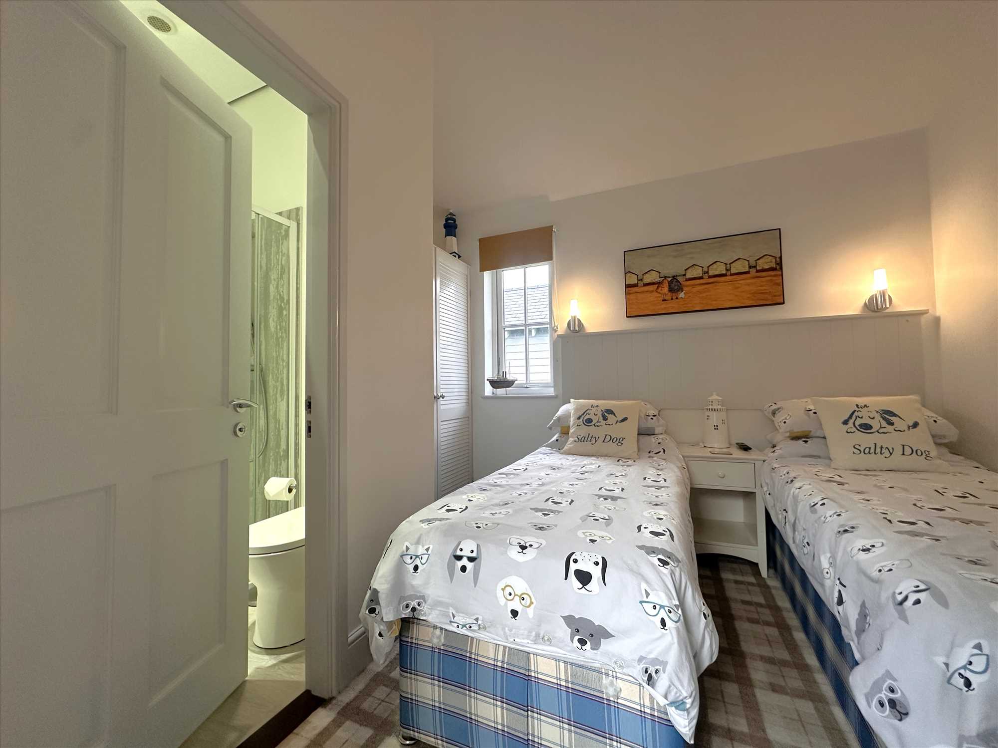 Door leading to the newly installed Jack & Jill shower room. Built in alcove style wardrobe. Television point. UPVC double glazed window. One central heating radiator. Included in the sale is two 2 f 6 in beds that link together to make a king size bed.