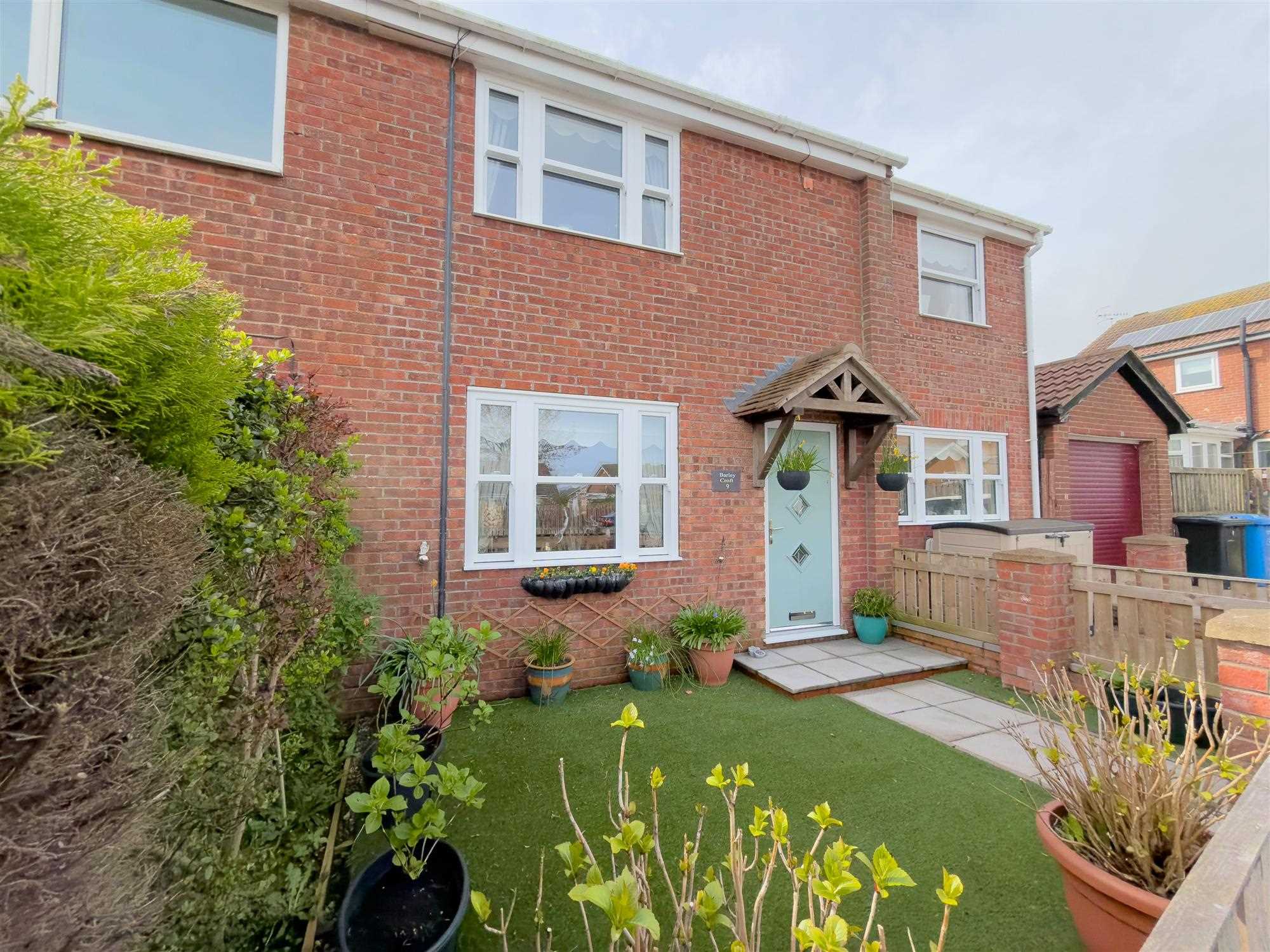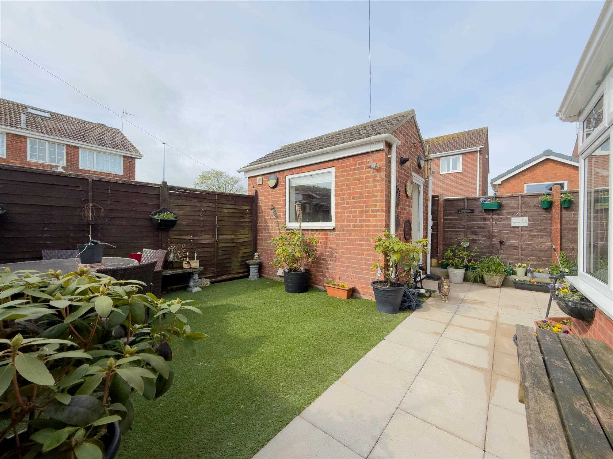 Attractive garden frontage with well enclosed rear garden, both designed for ease of maintenance with patio and hi-spec artificial grass features.