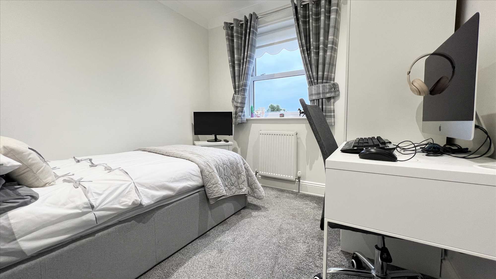 UPVC double-glazed window overlooking rear garden. Central heating radiator. LED spotlighting.